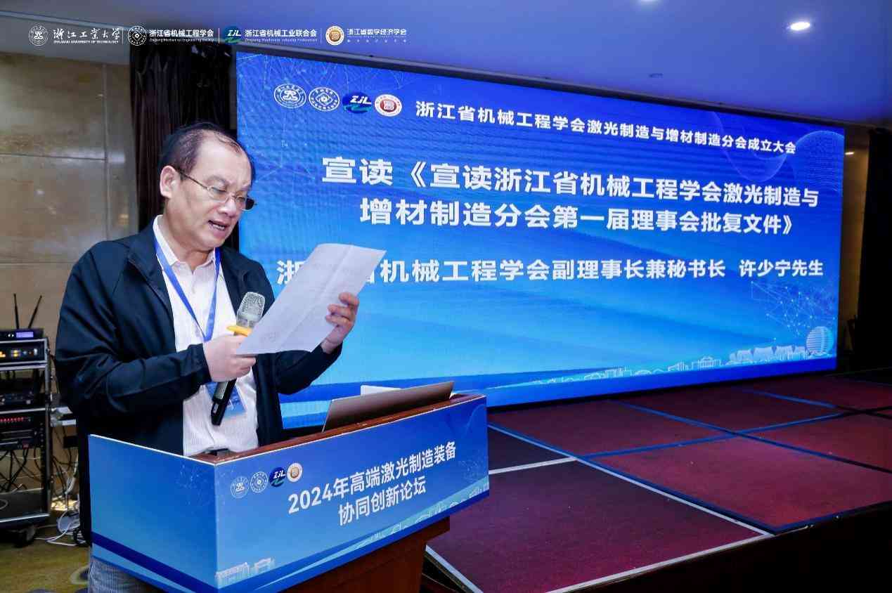 2024年11月3日,浙江省機(jī)械工程學(xué)會(huì)激光制造與增材制造分會(huì)成立大會(huì)暨一屆一次理事會(huì)議在杭州召開(kāi)。浙江省機(jī)械工程學(xué)會(huì)副理事長(zhǎng)陳國(guó)金、姚建華,副理事長(zhǎng)兼秘書(shū)長(zhǎng)許少寧,副秘書(shū)長(zhǎng)唐任仲、賴海鳴,浙江工業(yè)大學(xué)黨委委員、宣傳部部長(zhǎng)姜少飛,浙江省機(jī)械工程學(xué)會(huì)激光制造與增材制造分會(huì)理事以及嘉賓等150余人出席會(huì)議。分會(huì)成立大會(huì)同期召開(kāi)2024年高端激光制造裝備協(xié)同創(chuàng)新論壇,中國(guó)科學(xué)院寧波材料與工程技術(shù)研究所極端制造中心主任、英國(guó)皇家工程院院士李琳教授,浙江大學(xué)信息學(xué)部副主任、世界陶瓷科學(xué)院院士及歐洲科學(xué)院(外籍)院士邱建榮教授,以及激光制造與增材制造領(lǐng)域的專家學(xué)者受邀參會(huì)。